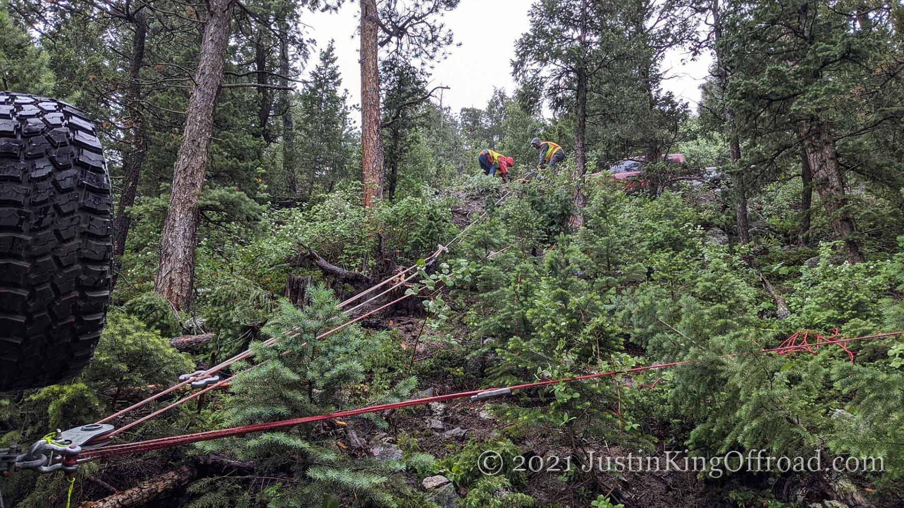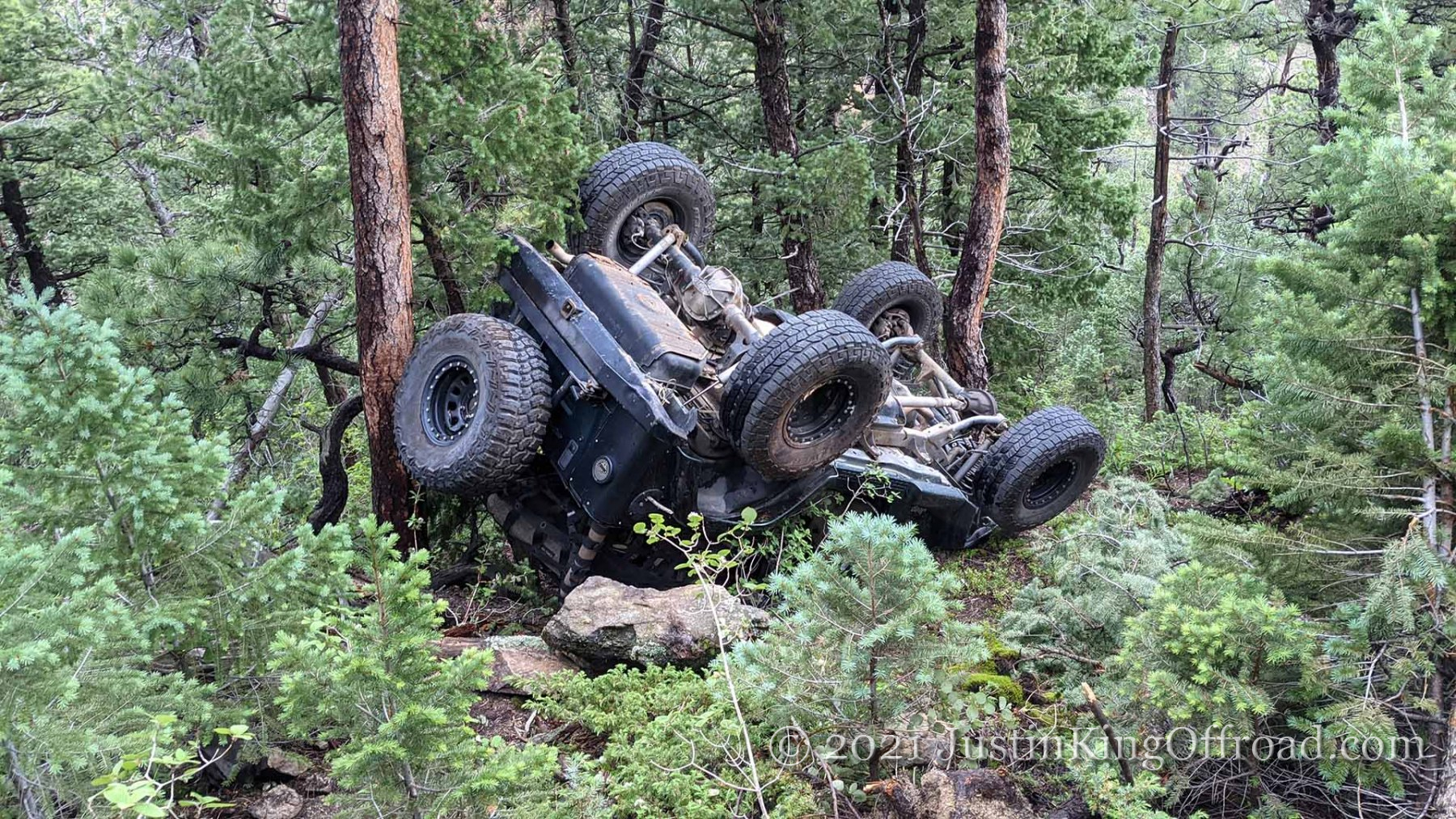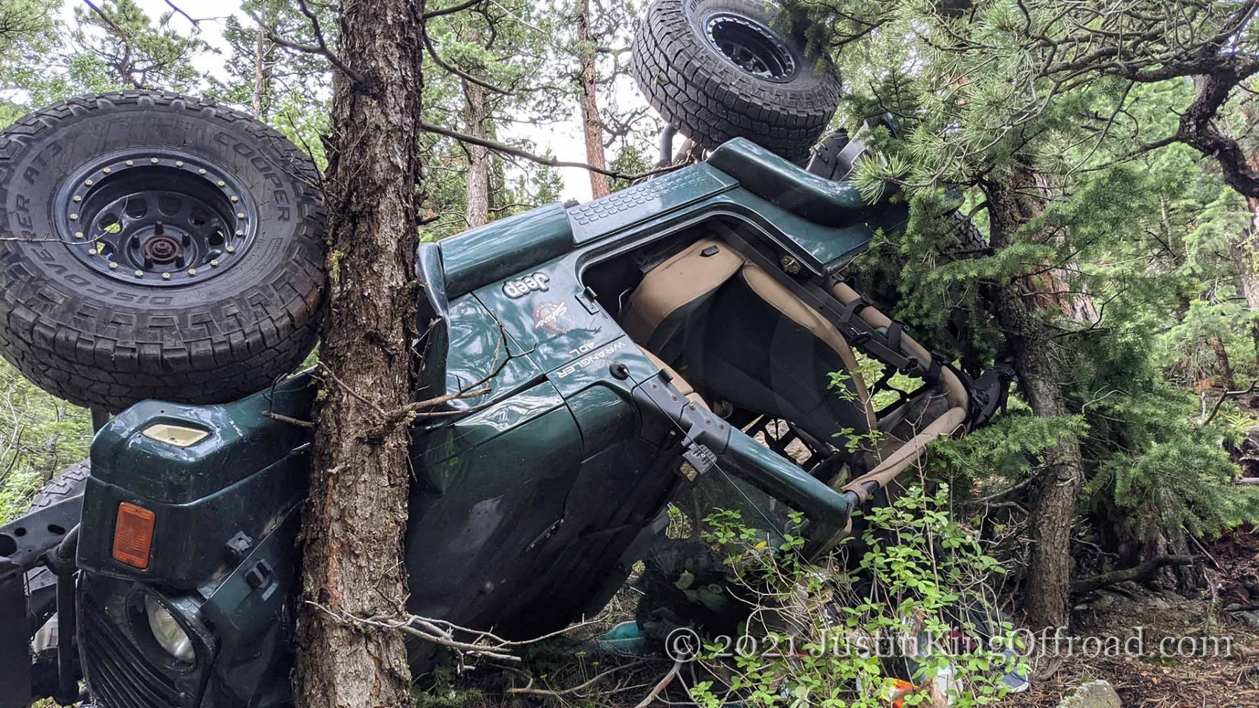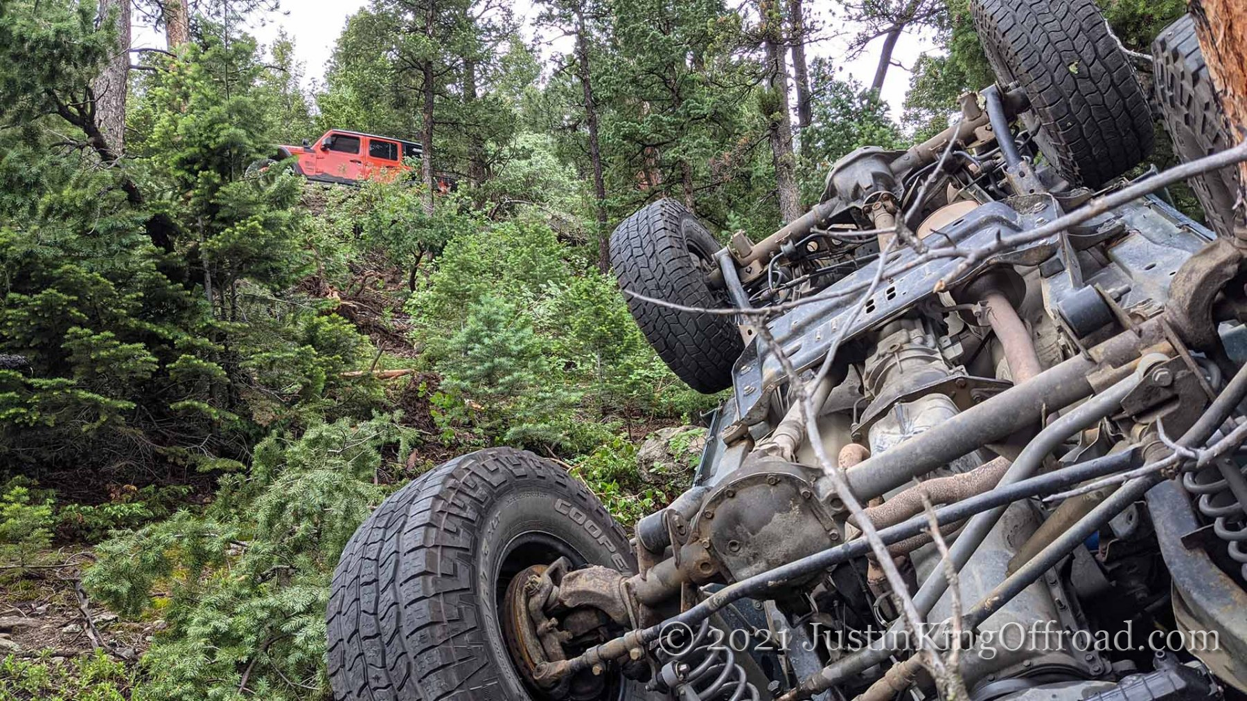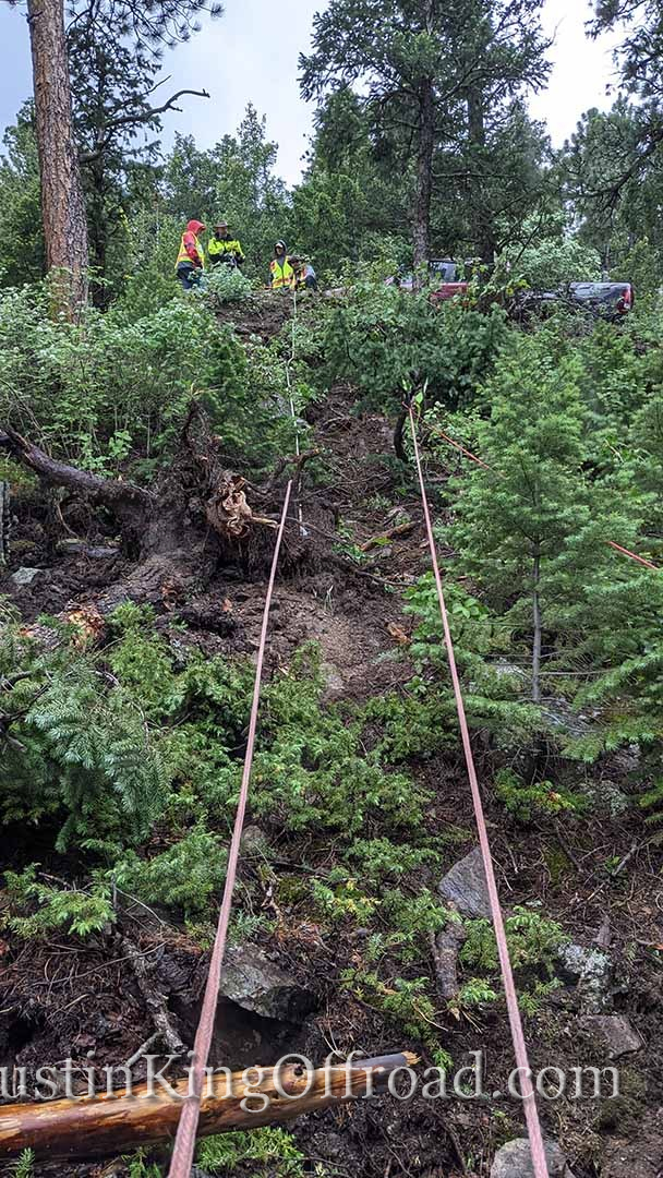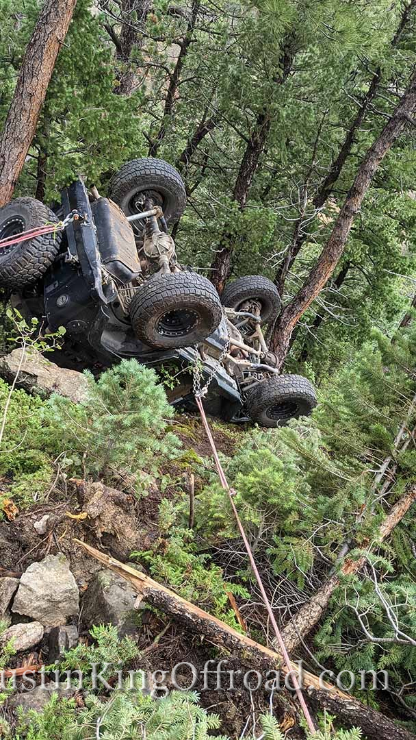 June 26th I spent the day with Colorado 4×4 Rescue and Recovery on the Switzerland Trail to recover a Jeep TJ that rolled over attempting to turn around on a tight trail. After getting the vehicle back on its wheels, the process began to pull it up the hill, which was upwards of 40+ degrees near the road. One occupant ended up with a broken back and is recovering at home, but had the trees not been where they were, this would have kept going until it hit the bottom of the canyon. This vehicle actually was able to drive out under its own power, even after being on it’s top for a week. We had to add a bit of water to the radiator, and some oil to the engine, but the 4.0 started right up!