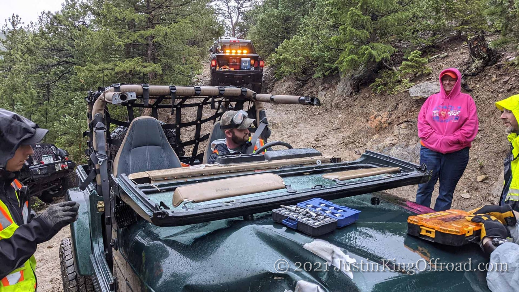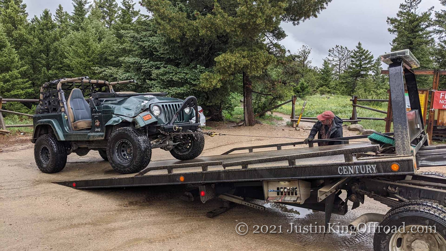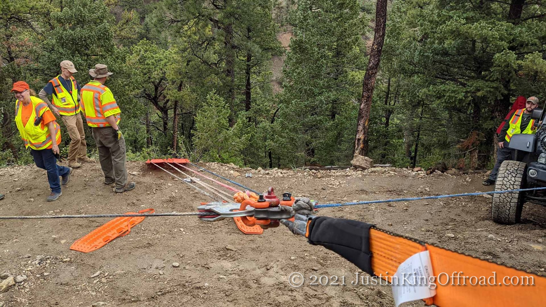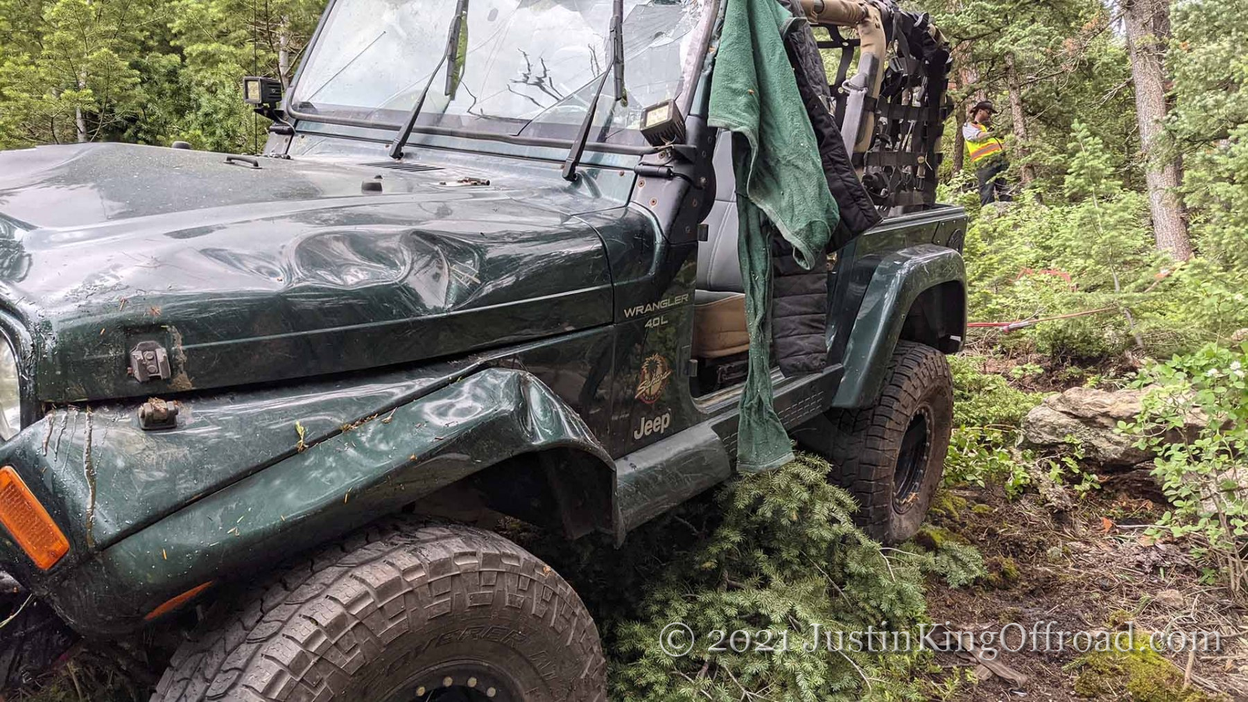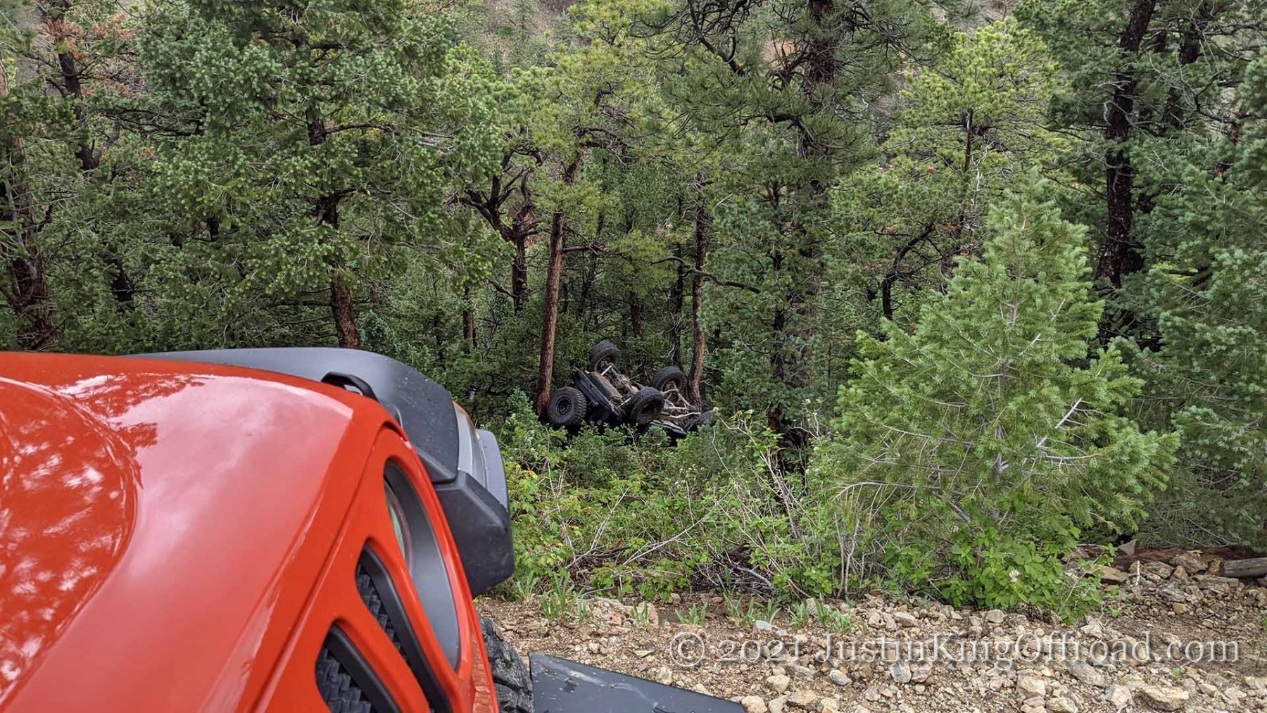 June 26th I spent the day with Colorado 4×4 Rescue and Recovery on the Switzerland Trail to recover a Jeep TJ that rolled over attempting to turn around on a tight trail. After getting the vehicle back on its wheels, the process began to pull it up the hill, which was upwards of 40+ degrees near the road. One occupant ended up with a broken back and is recovering at home, but had the trees not been where they were, this would have kept going until it hit the bottom of the canyon. This vehicle actually was able to drive out under its own power, even after being on it’s top for a week. We had to add a bit of water to the radiator, and some oil to the engine, but the 4.0 started right up!
