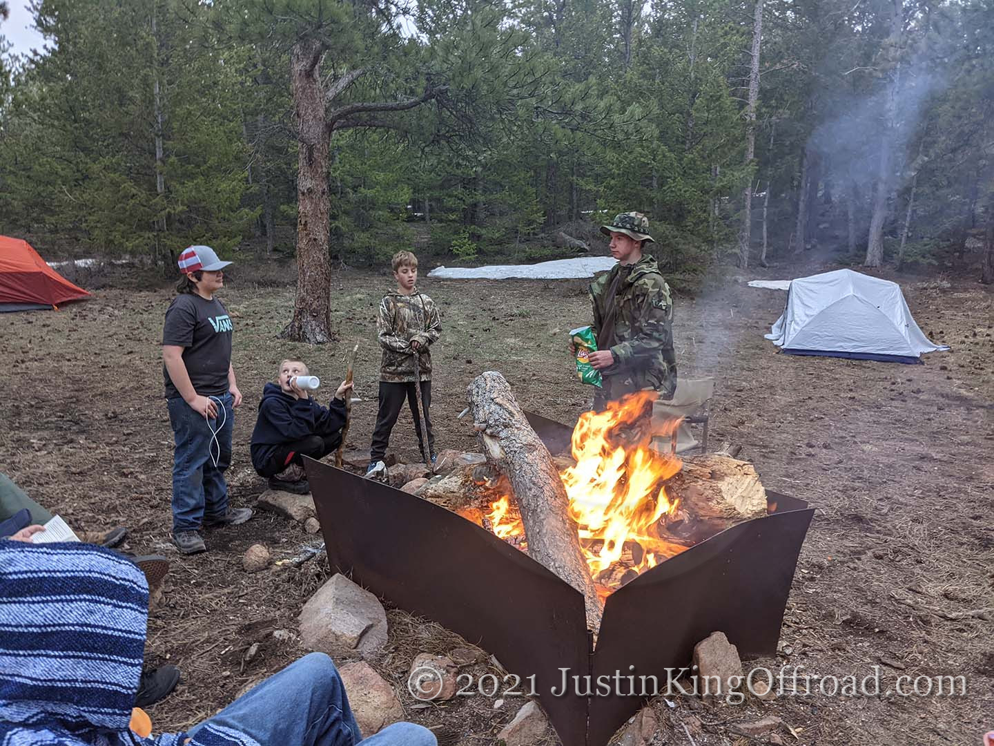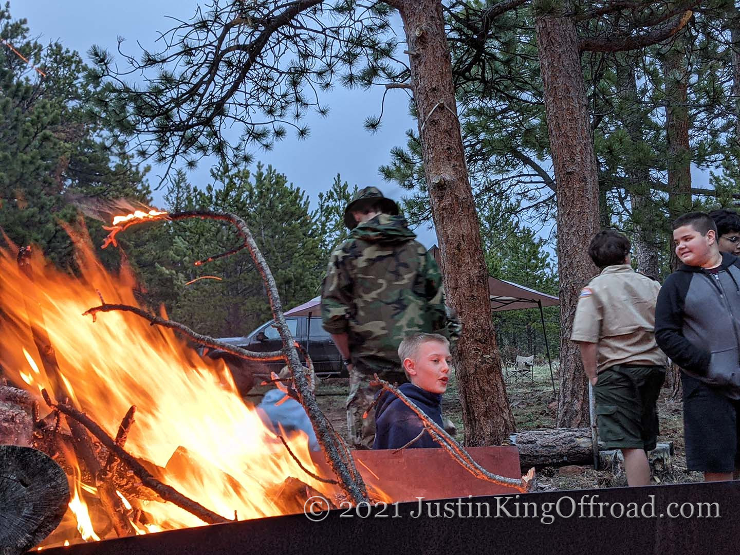 May of 2021 Troop 184 went on a weekend trip along the Colorado / Wyoming border. It was a dreary wet weekend but a ton of fun. We cooked dutch oven stews, sat by the bon fire, played camping games (which ended up with some dirt in an eye), and using a whole bottle of eye flush to get it cleaned out.